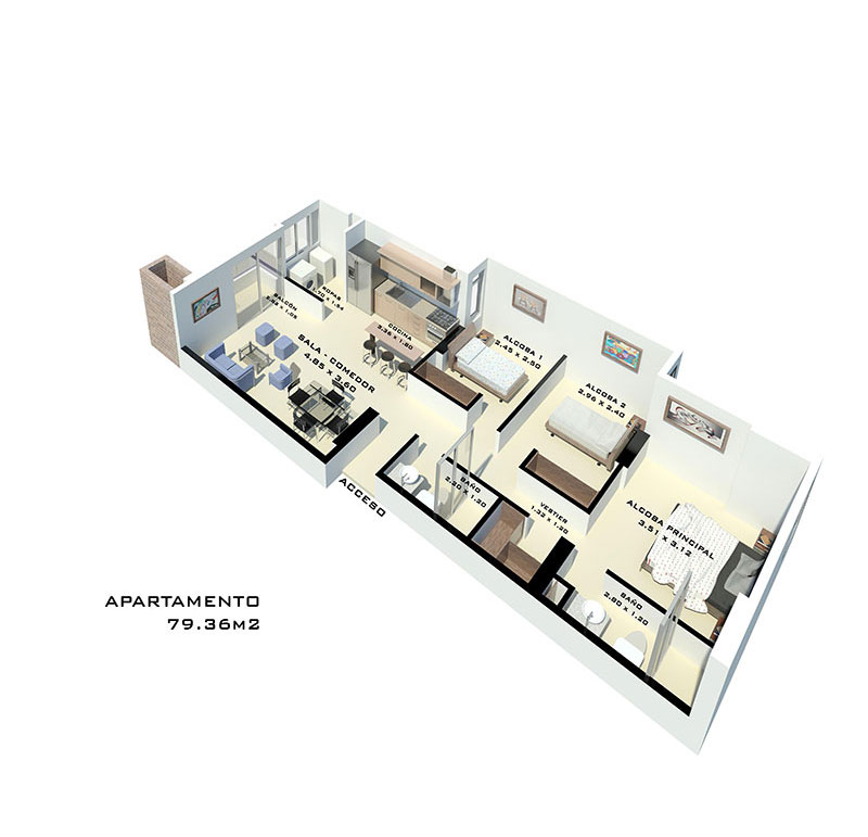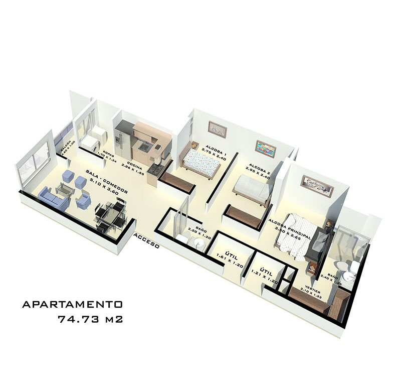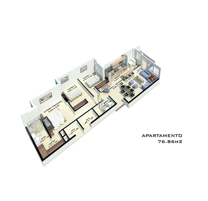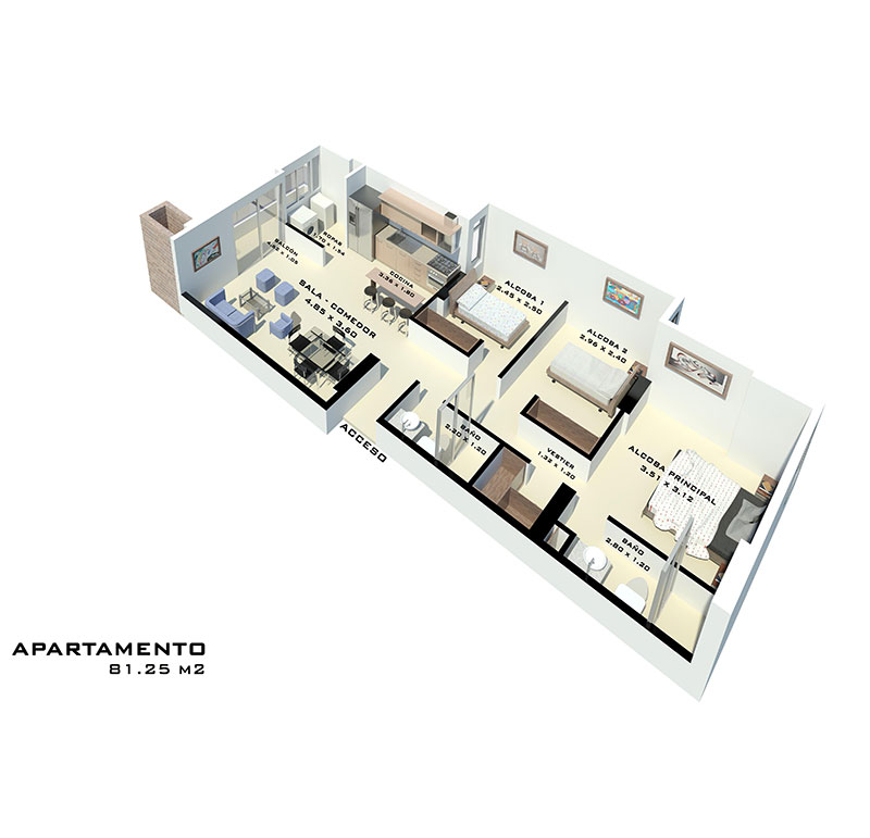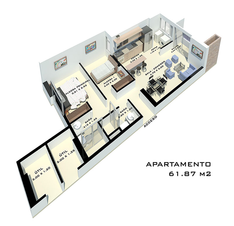 Apartamentos desde 61.87 m² hasta 81.25 m²